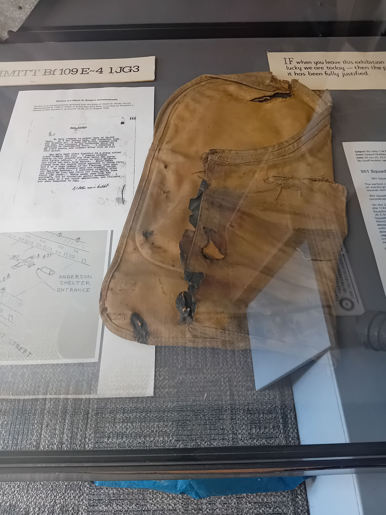 Oberleutnant Walter Binder's swim vest can be seen on display in our museum (see picture).