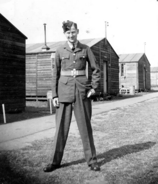 Bert trained as a Lancaster rear gunner, then prior to D-Day posted to Compton Basset for wireless operator training. He was re-posted to Portland, Weymouth in early June 1944 and crossed the Channel to Omaha Beach on D-Day +6 with American forces following the 21st Army Group through Normandy, France, and into Belgium.