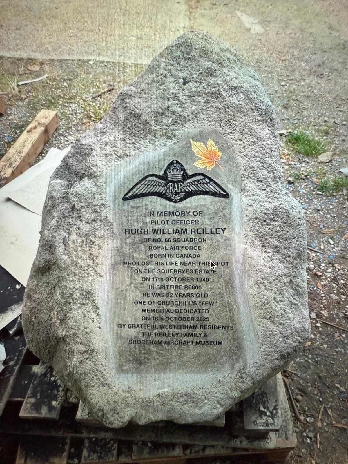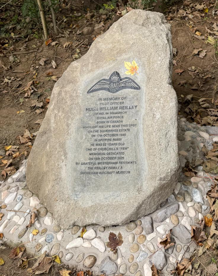 Our thirteenth memorial was dedicated to twenty-two year old Pilot Officer Hugh William Reilley of 66 Squadron on 18th October 2025. The memorial is located on the property of Squerryes Court in Kent, close to where he was killed.