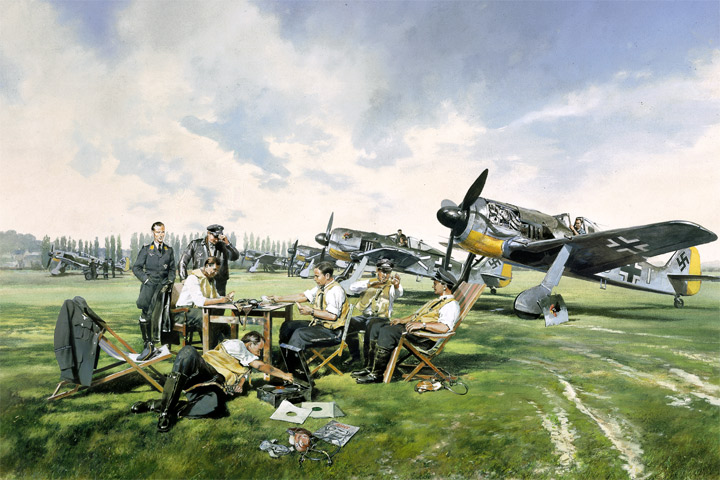 Two prints by Geoff Nutkins, both signed by Oberleutnant Armin Faber are available: "Aces High" and "Lone Wolf".